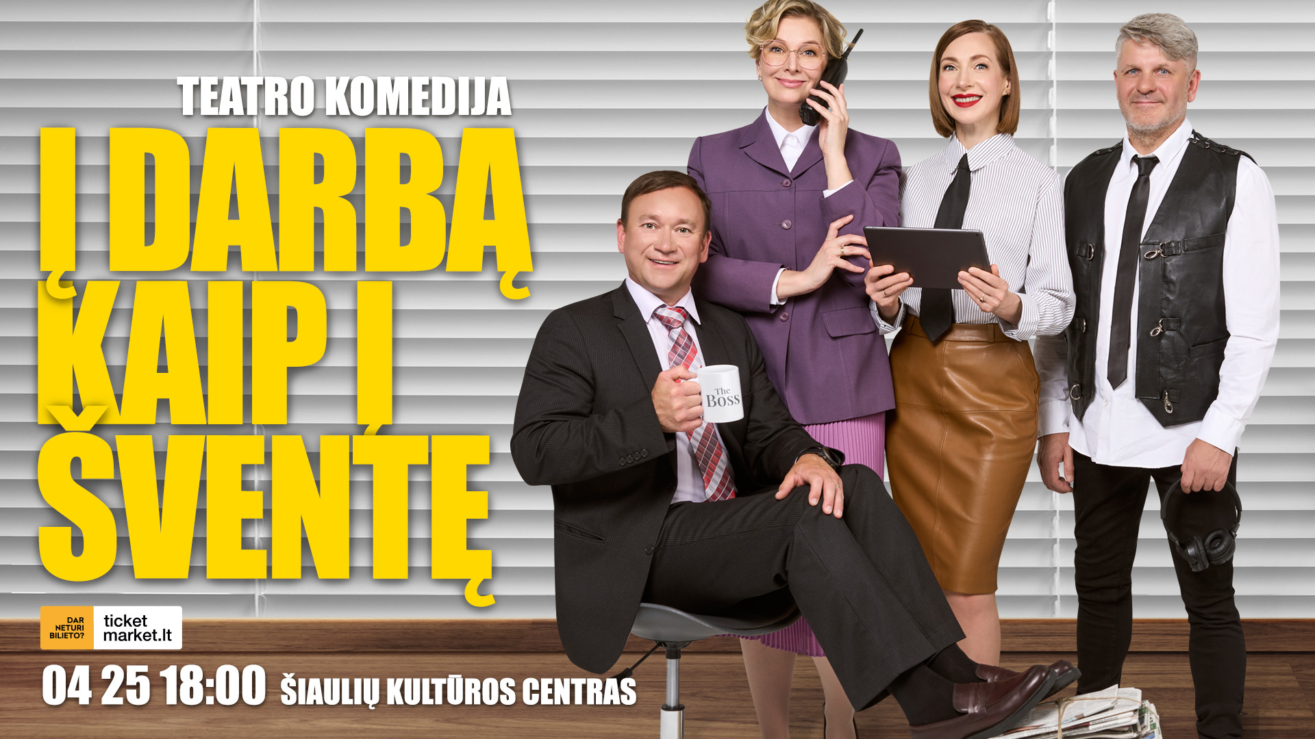 Gražaus pirmadienio darbe, ar tai įmanoma? Juk dauguma pirmadienio rytą jau pradeda laukti penktadienio vakaro, nes darbas tai ne pramoga, o pinigų uždirbimo vieta. Ar galėtų būti kitaip? Šį kartą „Aktorių teatras“ Jums pristato labai darbingą, bet kartu ir atpalaiduojančią komediją „Į darbą kaip į šventę“, pagal prancūzų autorės Isabelle Grolier pjesę „Laimingi darbe“.