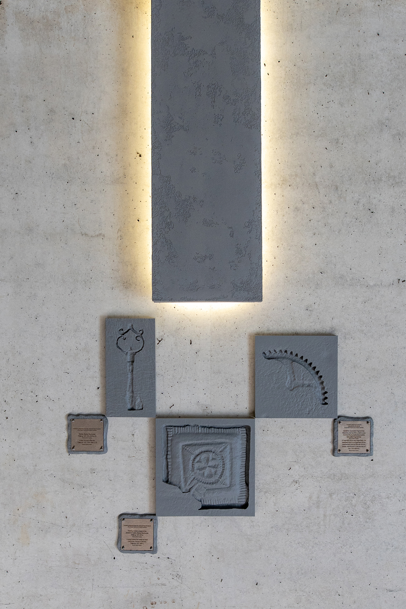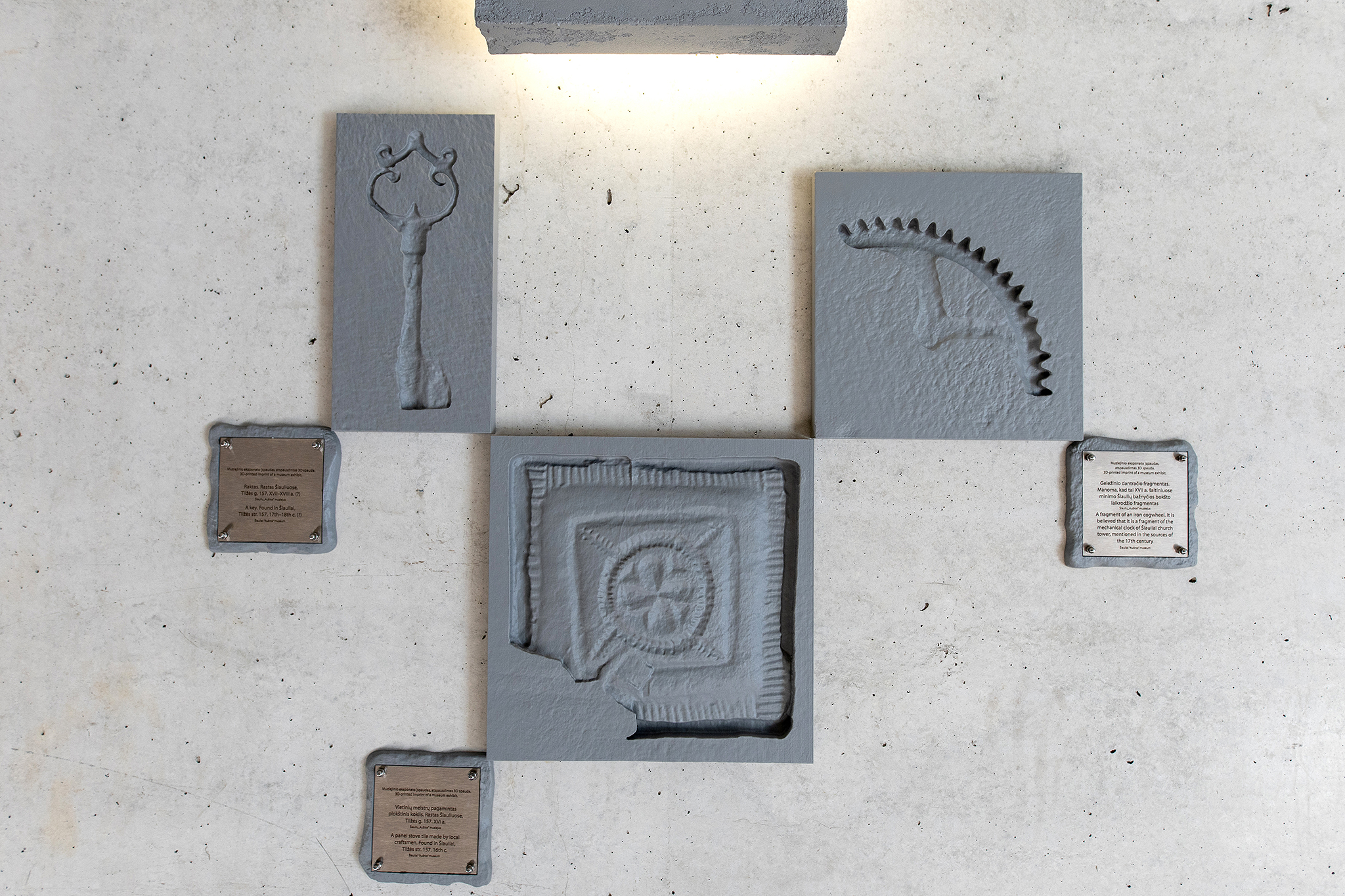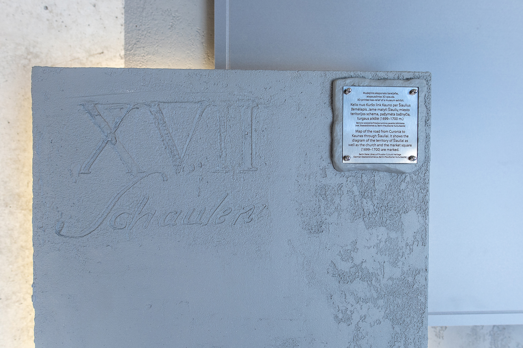 Reljefuose atsiskleis skirtingi Šiaulių istorijos sluoksniai – nuo XVI–XVII amžių, žyminčių miesto formavimosi pradžią, iki XX amžiaus: archeologiniai radiniai, miesto raidos ženklai, buities ir kultūros objektai. Tai ne eksponatai vitrinose – tai miesto atmintis, tampanti pačios erdvės dalimi. Šie objektai kuriami taip, kad būtų ne tik matomi, bet ir juntami – istorija čia atsiveria per formą, paviršių ir mastelį. Natūrali šviesa išryškina reljefų struktūrą, suteikdama jiems gyvybės ir vizualinio gylio.