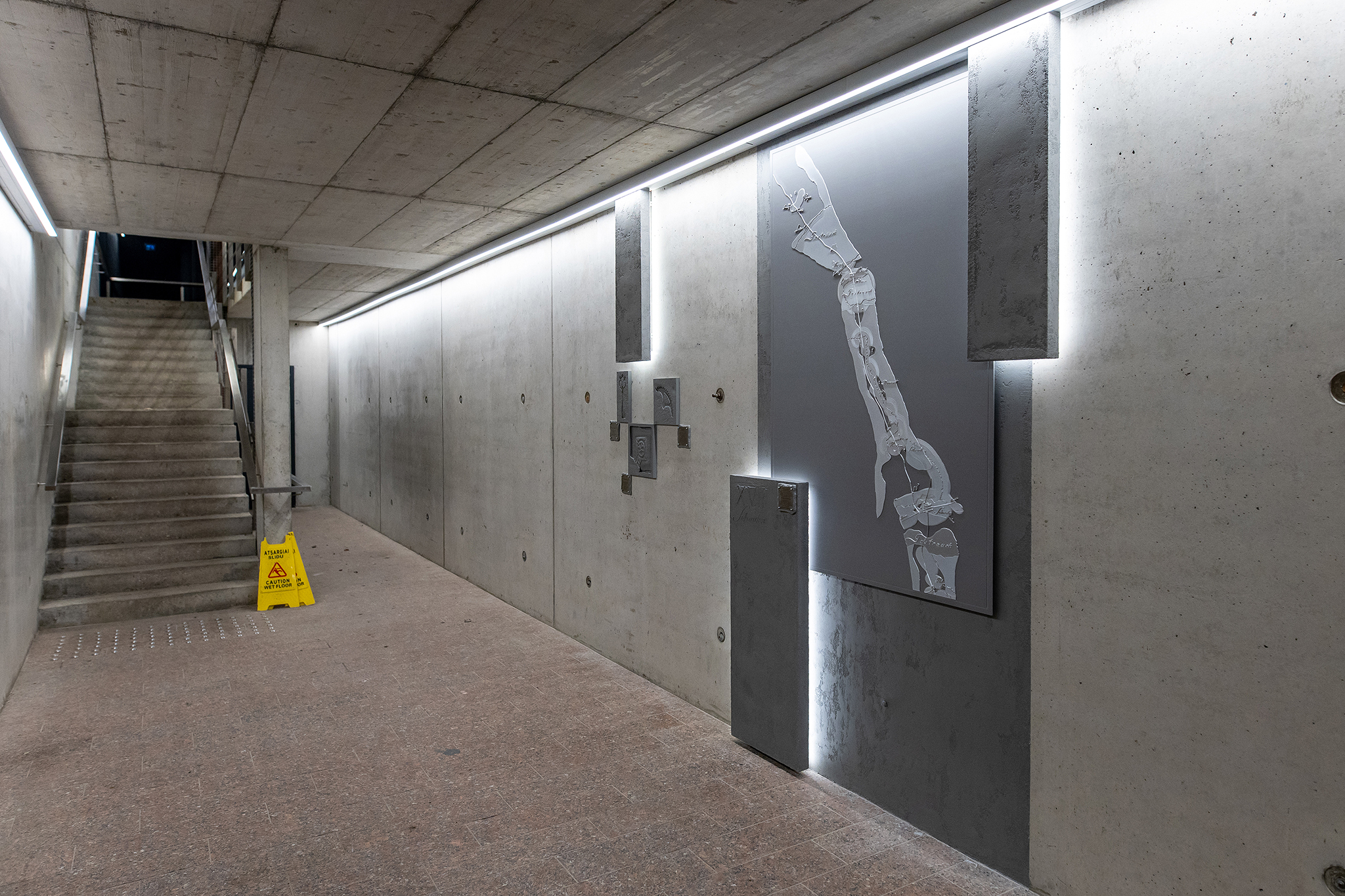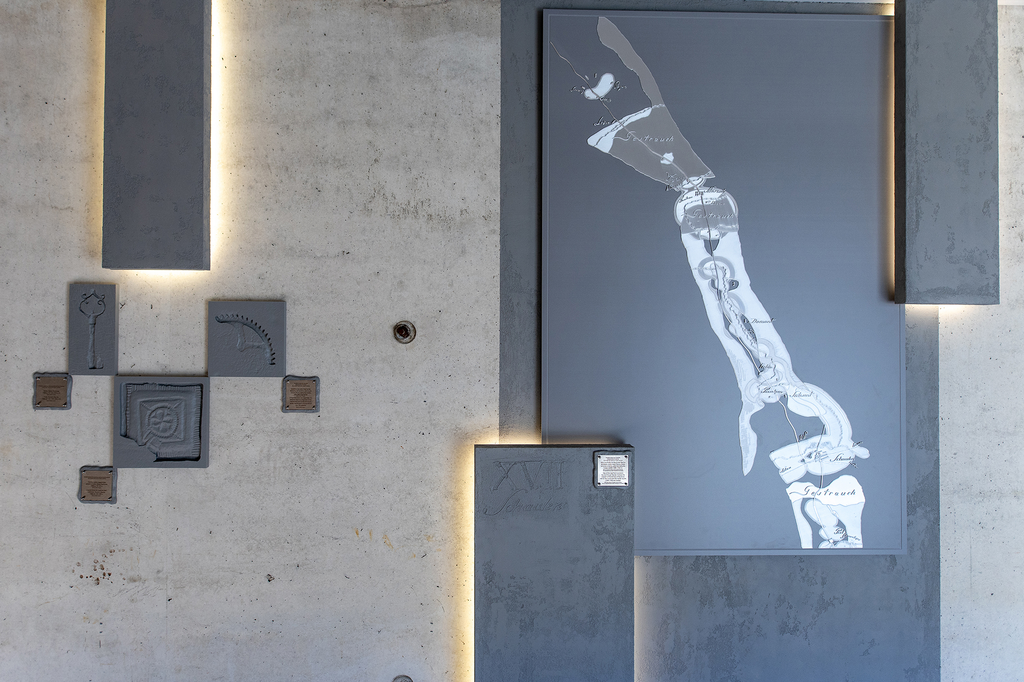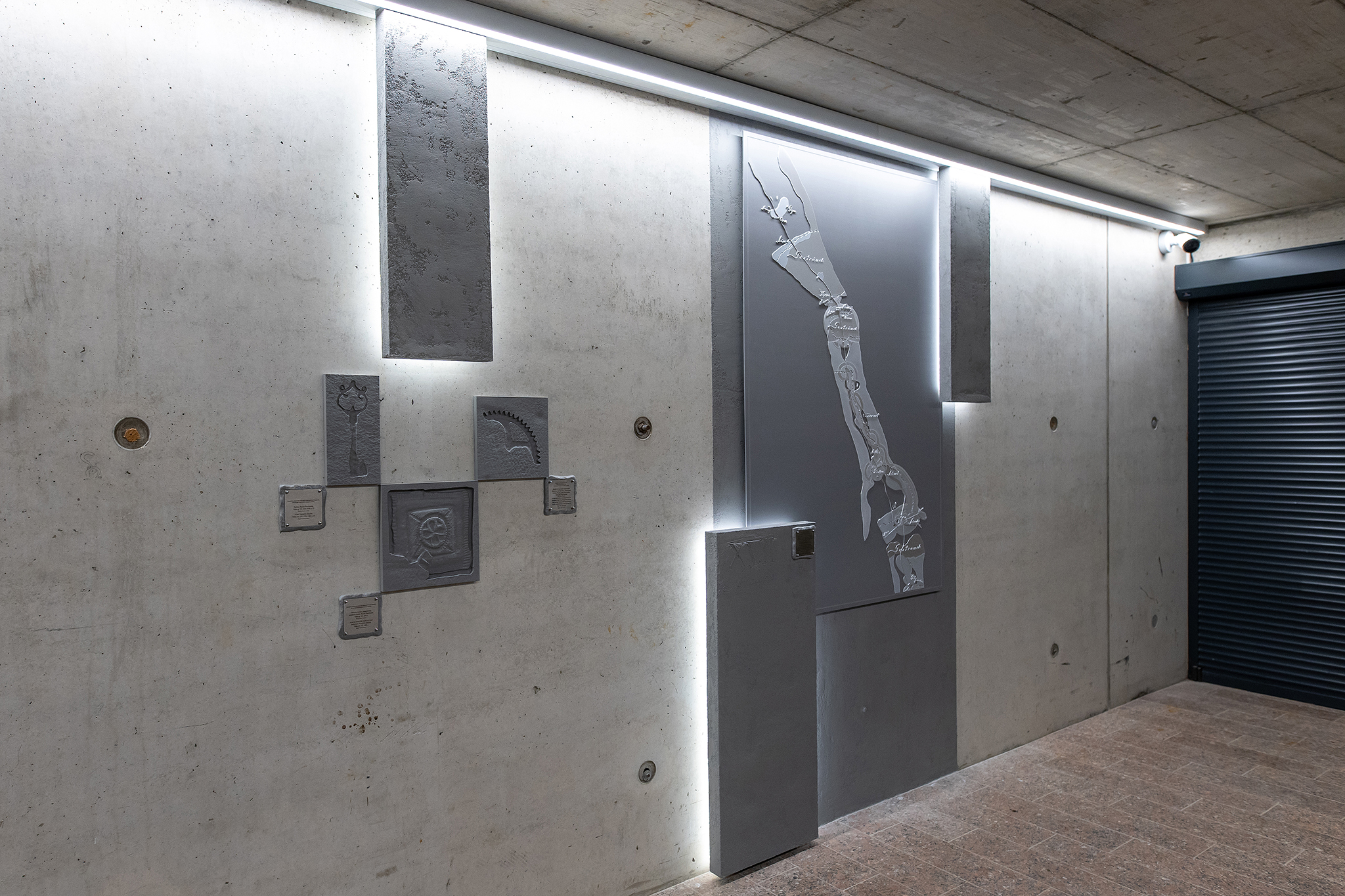 Reljefuose atsiskleis skirtingi Šiaulių istorijos sluoksniai – nuo XVI–XVII amžių, žyminčių miesto formavimosi pradžią, iki XX amžiaus: archeologiniai radiniai, miesto raidos ženklai, buities ir kultūros objektai. Tai ne eksponatai vitrinose – tai miesto atmintis, tampanti pačios erdvės dalimi. Šie objektai kuriami taip, kad būtų ne tik matomi, bet ir juntami – istorija čia atsiveria per formą, paviršių ir mastelį. Natūrali šviesa išryškina reljefų struktūrą, suteikdama jiems gyvybės ir vizualinio gylio.
